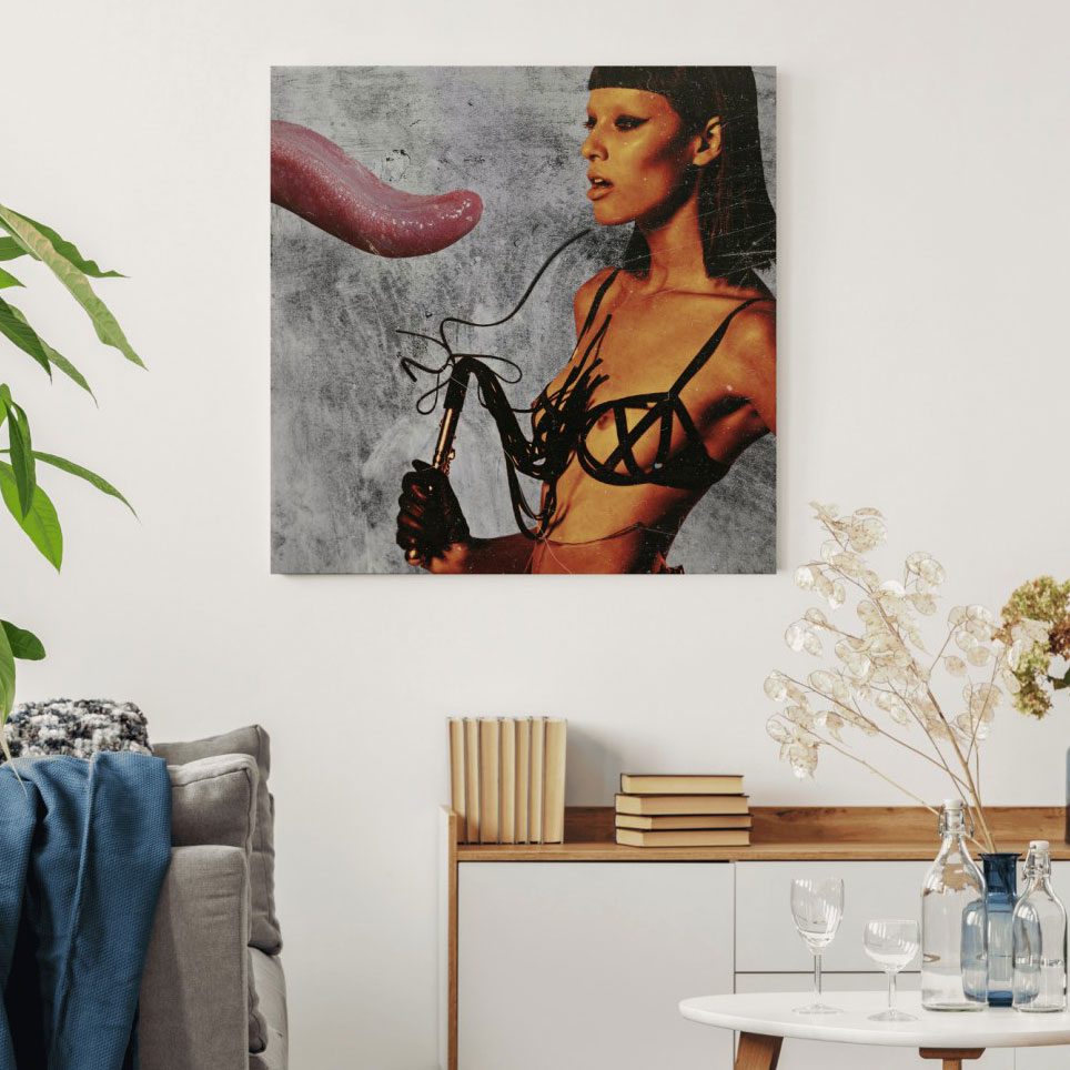 This artwork presents a provocative commentary on consumer culture and modern desires, using striking visual metaphors and deliberate aesthetic choices to explore themes of commercialization and societal pressures. The artwork successfully merges provocative imagery with social commentary, creating a powerful statement about modern consumption, desire, and societal pressures. Through its technical execution and symbolic elements, it challenges viewers to confront their relationship with consumer culture.